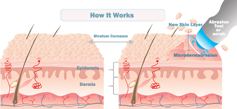 Microdermabrasion is a method of facial rejuvenation that uses exfoliating to remove the outermost layer of skin, (the stratum corneum), using a tool or mechanical means (like a crystal based scrub or exfoliation cloth) designed to remove